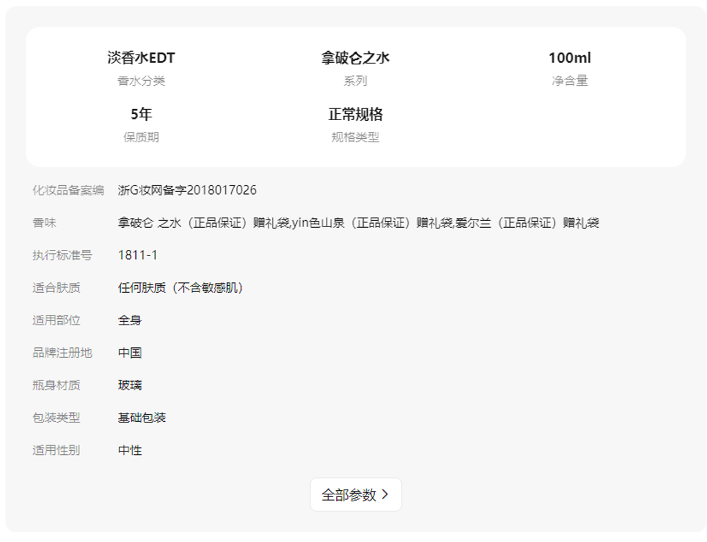 - 拿破仑 之水(正品保证)赠礼袋100ml
