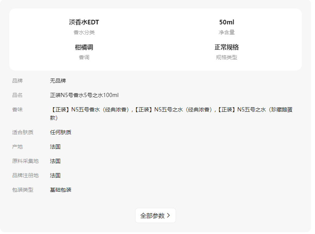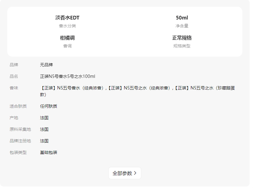 - 【正装】N5五号香水(经典浓香)100ml