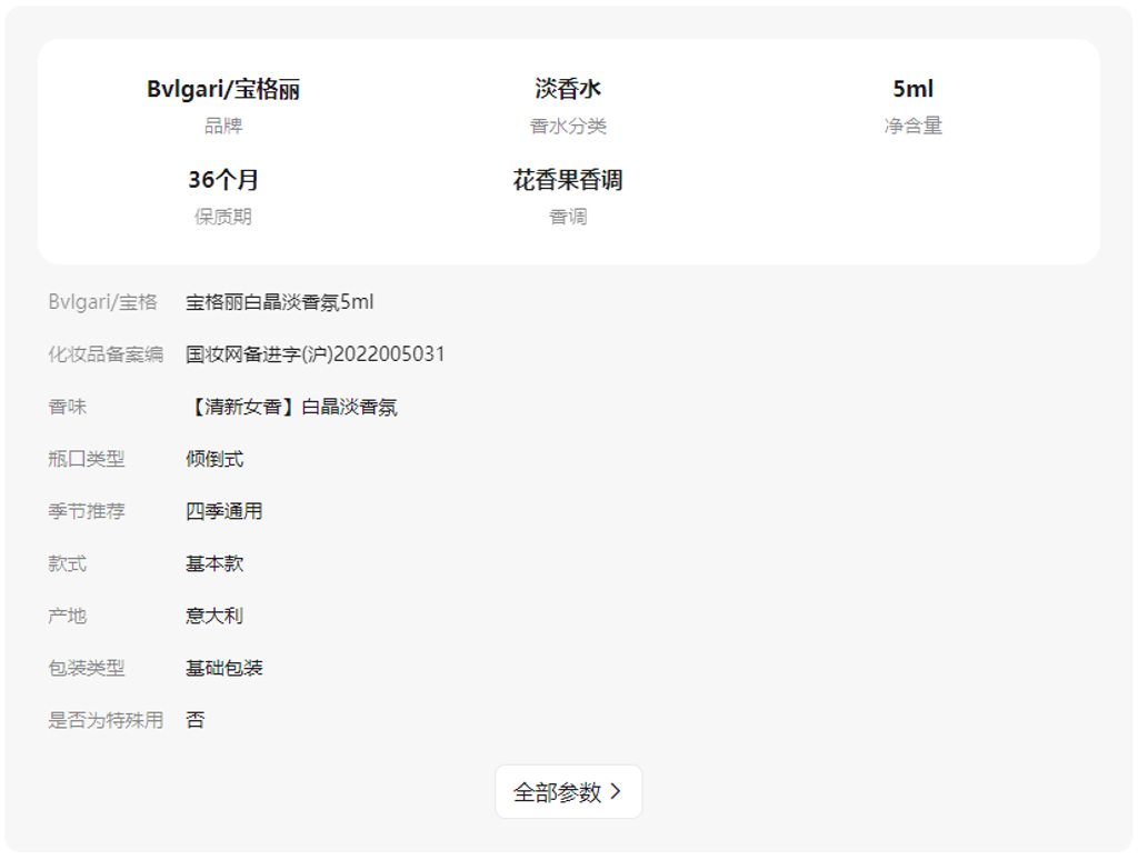 - 花香果香调【清新女香】白晶淡香氛5ml