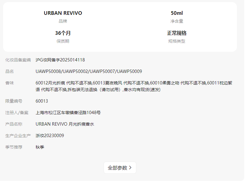 - 60012月光折痕 代购不退不换50 ml